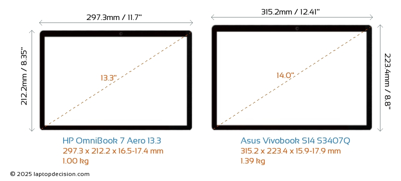 USBLes deux OmniBook 7 Aero 13.3 et Vivobook S14 S3407Q disposent de 2x USB 3.2 ports USB-A.Les deux OmniBook 7 Aero 13.3 et Vivobook S14 S3407Q disposent de 2x USB 4.0 ports USB Type-C.