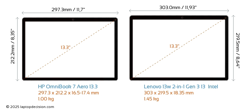 USBLes deux OmniBook 7 Aero 13.3 et 13w 2-in-1 Gen 3 13 Intel disposent de 2x USB 3.2 ports USB-A.Les deux OmniBook 7 Aero 13.3 et 13w 2-in-1 Gen 3 13 Intel disposent de 2x USB 4.0 ports USB Type-C.