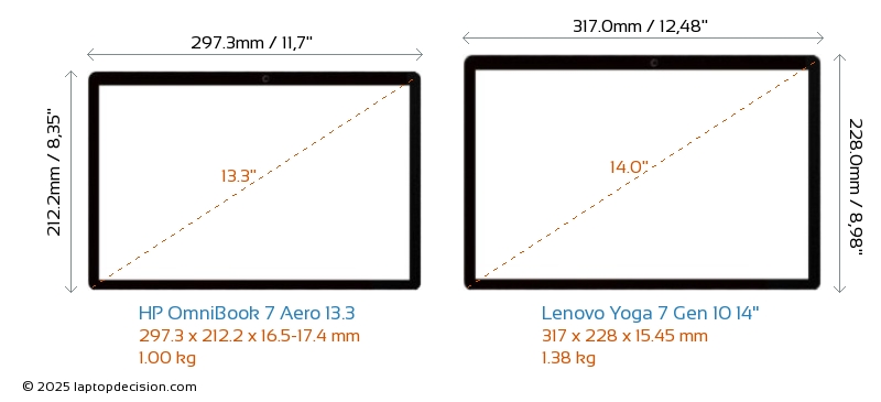USBLes deux OmniBook 7 Aero 13.3 et Yoga 7 Gen 10 14" disposent de ports USB-A. OmniBook 7 Aero 13.3 dispose de 2x USB 3.2 ports USB-A, tandis que Yoga 7 Gen 10 14" en dispose de 1x USB 3.2.Les deux OmniBook 7 Aero 13.3 et Yoga 7 Gen 10 14" disposent de 2x USB 4.0 ports USB Type-C.
