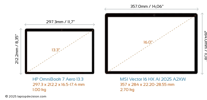 USBLes deux OmniBook 7 Aero 13.3 et Vector 16 HX AI 2025 A2XW disposent de 2x USB 3.2 ports USB-A.Les deux OmniBook 7 Aero 13.3 et Vector 16 HX AI 2025 A2XW disposent de 2x USB 4.0 ports USB Type-C.