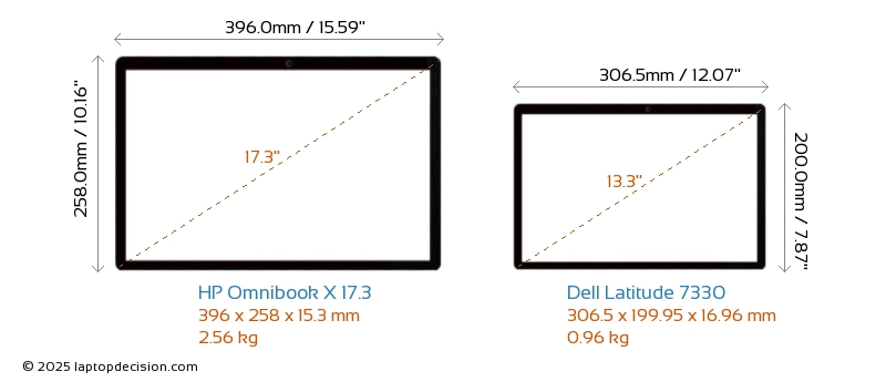 HDMILes deux Omnibook X 17.3 et Latitude 7330 disposent d'un port HDMI. Omnibook X 17.3 offre 1x HDMI 2.1, tandis que Latitude 7330 offre 1x HDMI 2.0.