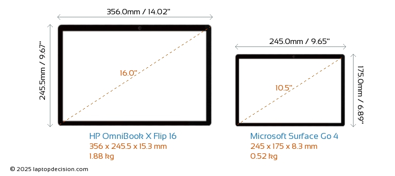 Prise AudioLes deux OmniBook X Flip 16 et Surface Go 4 sont équipés d'une prise audio de 3,5 mm, permettant une connexion sans interruption aux écouteurs et haut-parleurs.