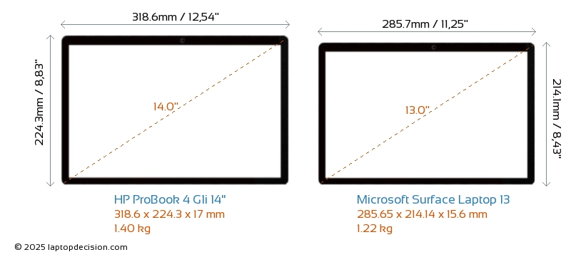 USBLes deux ProBook 4 G1i 14" et Surface Laptop 13 disposent de 1x USB 3.2 ports USB-A.Les deux ProBook 4 G1i 14" et Surface Laptop 13 disposent de 2x USB 4.0 ports USB Type-C.