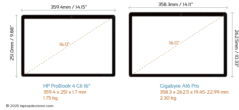 ThunderboltAucun des deux ProBook 4 G1i 16" ni A16 Pro n'a de port Thunderbolt.