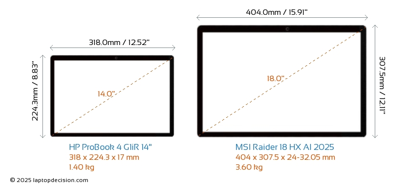 HDMILes deux ProBook 4 G1iR 14" et Raider 18 HX AI 2025 disposent d'un port HDMI (1x HDMI 2.1) pour se connecter à des moniteurs externes.