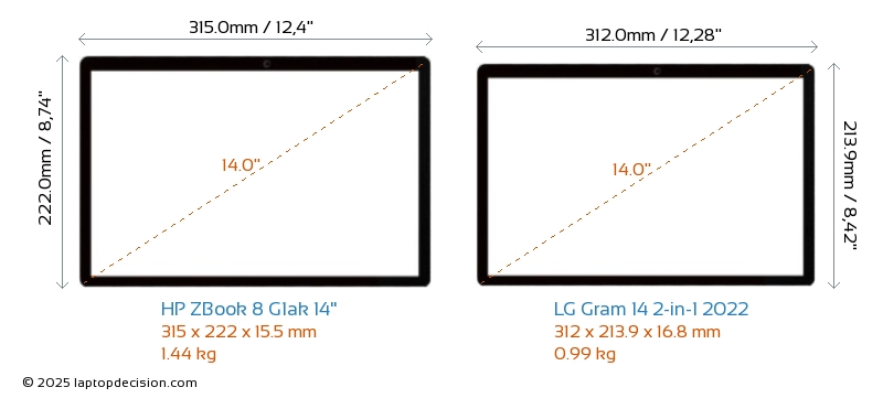ThunderboltLes deux ZBook 8 G1ak 14" et Gram 14 2-in-1 2022 sont équipés de Thunderbolt 4 ports.