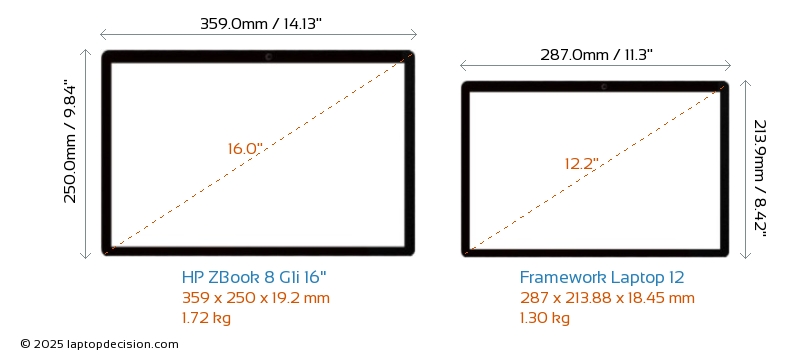 USBLes deux ZBook 8 G1i 16" et Laptop 12 disposent de ports USB-A. ZBook 8 G1i 16" dispose de 2x USB 3.2 ports USB-A, tandis que Laptop 12 en dispose de 4x USB 3.2.Les deux ZBook 8 G1i 16" et Laptop 12 disposent de ports USB Type-C. ZBook 8 G1i 16" dispose de 2x USB 4.0 ports USB Type-C, tandis que Laptop 12 en dispose de 4x USB 4.0.
