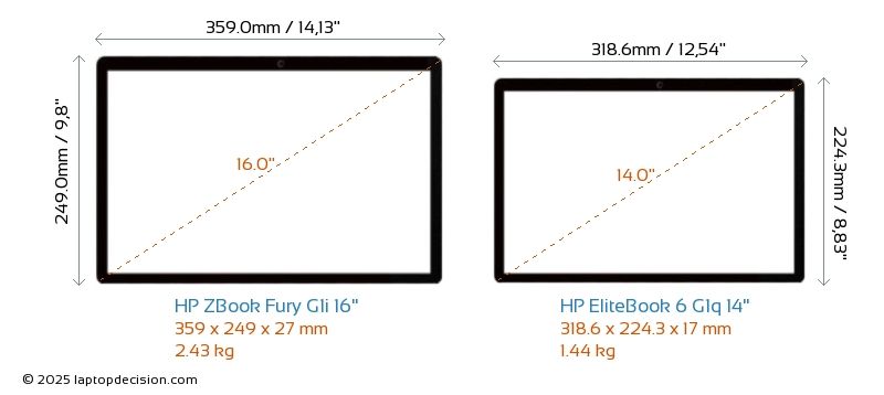 Thunderbolt ZBook Fury G1i 16" est équipé d'un port Thunderbolt 5. EliteBook 6 G1q 14" n'a pas de port Thunderbolt.