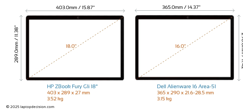 USBLes deux ZBook Fury G1i 18" et Alienware 16 Area-51 disposent de ports USB-A. ZBook Fury G1i 18" dispose de 1x USB 3.2 ports USB-A, tandis que Alienware 16 Area-51 en dispose de 3x USB 3.2.Les deux ZBook Fury G1i 18" et Alienware 16 Area-51 disposent de ports USB Type-C. ZBook Fury G1i 18" dispose de 3x USB 4.0 ports USB Type-C, tandis que Alienware 16 Area-51 en dispose de 2x USB 4.0.