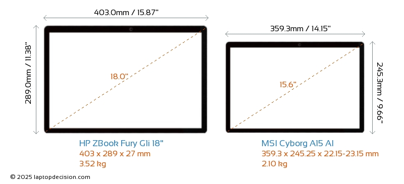 HDMILes deux ZBook Fury G1i 18" et Cyborg A15 AI disposent d'un port HDMI (1x HDMI 2.1) pour se connecter à des moniteurs externes.