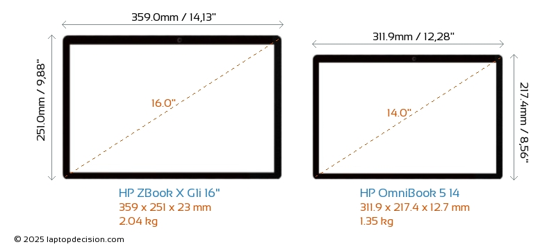 HDMI ZBook X G1i 16" dispose d'un port HDMI (1x HDMI 2.1) pour se connecter à des moniteurs externes. OmniBook 5 14 n'a pas de port HDMI.