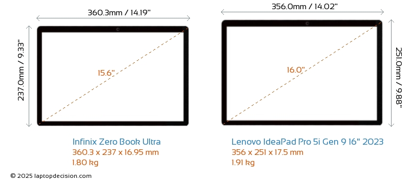 Thunderbolt IdeaPad Pro 5i Gen 9 16" 2023 est équipé d'un port Thunderbolt 4. Zero Book Ultra n'a pas de port Thunderbolt.