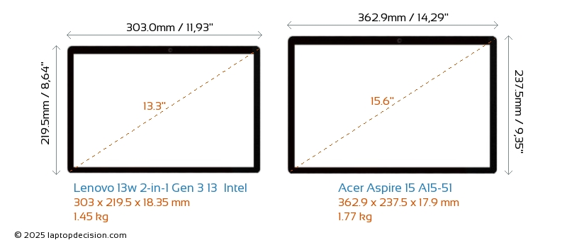 ThunderboltAucun des deux 13w 2-in-1 Gen 3 13 Intel ni Aspire 15 A15-51 n'a de port Thunderbolt.