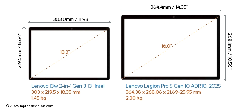 ThunderboltAucun des deux 13w 2-in-1 Gen 3 13 Intel ni Legion Pro 5 Gen 10 ADR10, 2025 n'a de port Thunderbolt.