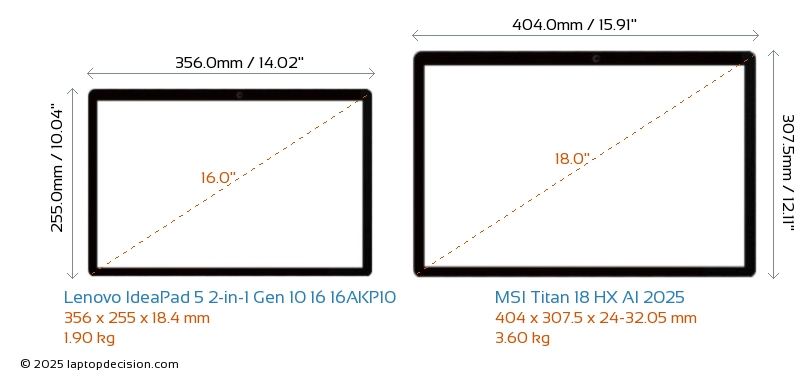 Thunderbolt Titan 18 HX AI 2025 est équipé d'un port Thunderbolt 5. IdeaPad 5 2-in-1 Gen 10 16 16AKP10 n'a pas de port Thunderbolt.