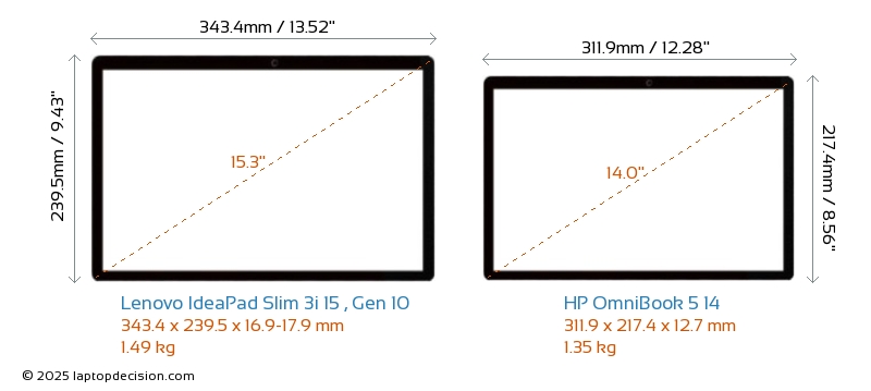 HDMI IdeaPad Slim 3i 15 , Gen 10 dispose d'un port HDMI (1x HDMI 1.4) pour se connecter à des moniteurs externes. OmniBook 5 14 n'a pas de port HDMI.