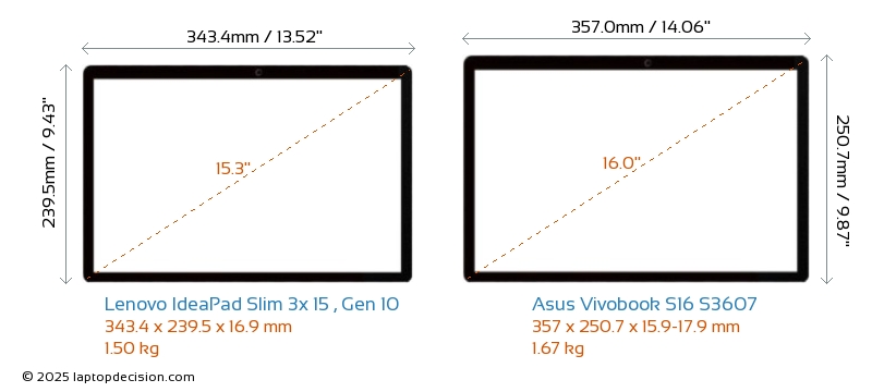 USBLes deux IdeaPad Slim 3x 15 , Gen 10 et Vivobook S16 S3607 disposent de 2x USB 3.2 ports USB-A.Les deux IdeaPad Slim 3x 15 , Gen 10 et Vivobook S16 S3607 disposent de ports USB Type-C. IdeaPad Slim 3x 15 , Gen 10 dispose de 1x USB 3.2 ports USB Type-C, tandis que Vivobook S16 S3607 en dispose de 2x USB 4.0.