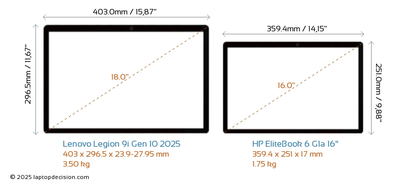 HDMILes deux Legion 9i Gen 10 2025 et EliteBook 6 G1a 16" disposent d'un port HDMI (1x HDMI 2.1) pour se connecter à des moniteurs externes.