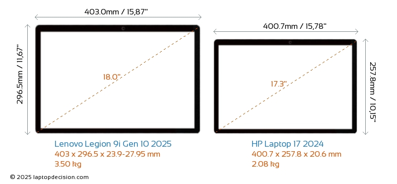 HDMILes deux Legion 9i Gen 10 2025 et Laptop 17 2024 disposent d'un port HDMI. Legion 9i Gen 10 2025 offre 1x HDMI 2.1, tandis que Laptop 17 2024 offre 1x HDMI 1.4.