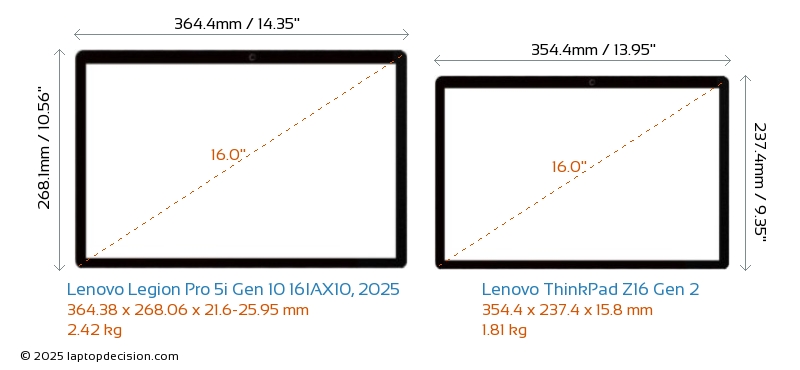Thunderbolt Legion Pro 5i Gen 10 16IAX10, 2025 est équipé d'un port Thunderbolt 4. ThinkPad Z16 Gen 2 n'a pas de port Thunderbolt.