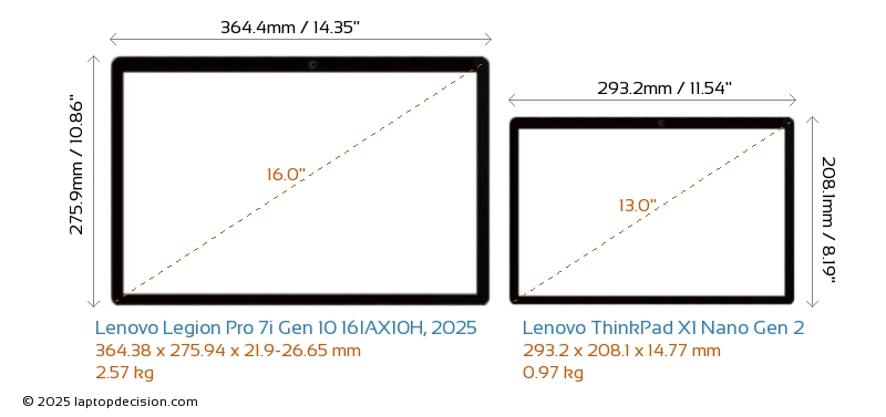 HDMI Legion Pro 7i Gen 10 16IAX10H, 2025 dispose d'un port HDMI (1x HDMI 2.1) pour se connecter à des moniteurs externes. ThinkPad X1 Nano Gen 2 n'a pas de port HDMI.