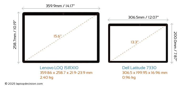 USBLes deux LOQ 15IRX10 et Latitude 7330 disposent de ports USB-A. LOQ 15IRX10 dispose de 3x USB 3.2 ports USB-A, tandis que Latitude 7330 en dispose de 1x USB 3.2.Les deux LOQ 15IRX10 et Latitude 7330 disposent de ports USB Type-C. LOQ 15IRX10 dispose de 1x USB 3.2 ports USB Type-C, tandis que Latitude 7330 en dispose de 2x USB 3.2.