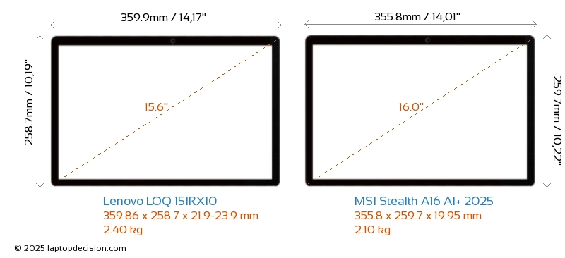 USBLes deux LOQ 15IRX10 et Stealth A16 AI+ 2025 disposent de ports USB-A. LOQ 15IRX10 dispose de 3x USB 3.2 ports USB-A, tandis que Stealth A16 AI+ 2025 en dispose de 2x USB 3.2.Les deux LOQ 15IRX10 et Stealth A16 AI+ 2025 disposent de ports USB Type-C. LOQ 15IRX10 dispose de 1x USB 3.2 ports USB Type-C, tandis que Stealth A16 AI+ 2025 en dispose de 1x USB 4.0.
