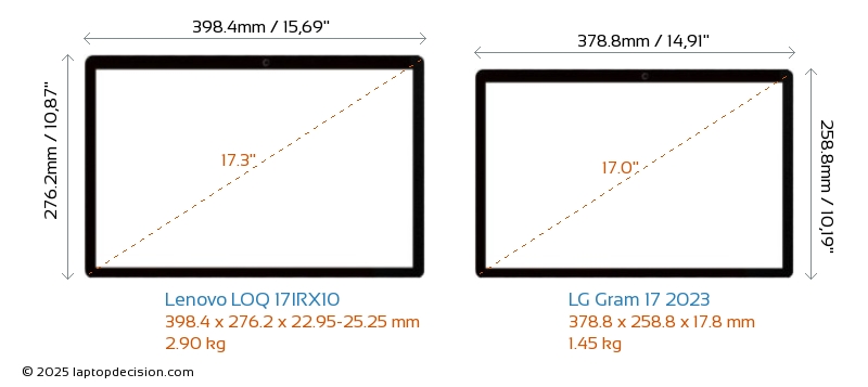 Thunderbolt Gram 17 2023 est équipé d'un port Thunderbolt 4. LOQ 17IRX10 n'a pas de port Thunderbolt.