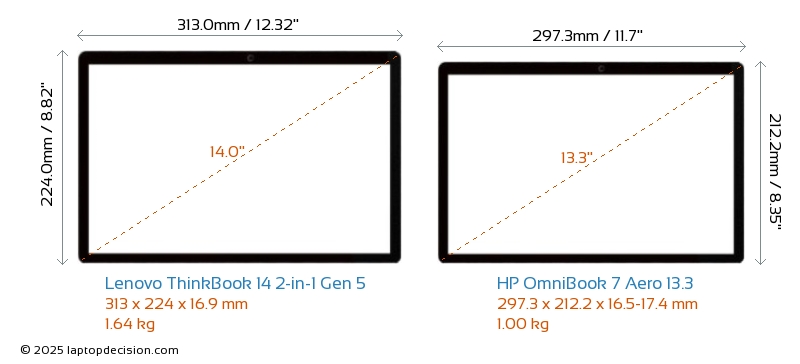 USBLes deux ThinkBook 14 2-in-1 Gen 5 et OmniBook 7 Aero 13.3 disposent de 2x USB 3.2 ports USB-A.Les deux ThinkBook 14 2-in-1 Gen 5 et OmniBook 7 Aero 13.3 disposent de 2x USB 4.0 ports USB Type-C.