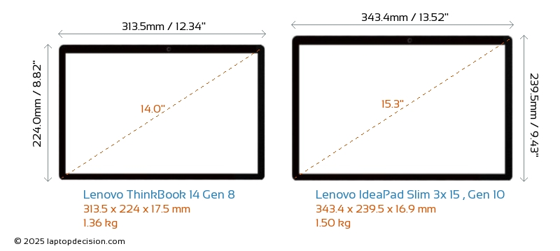 Thunderbolt ThinkBook 14 Gen 8 est équipé d'un port Thunderbolt 4. IdeaPad Slim 3x 15 , Gen 10 n'a pas de port Thunderbolt.