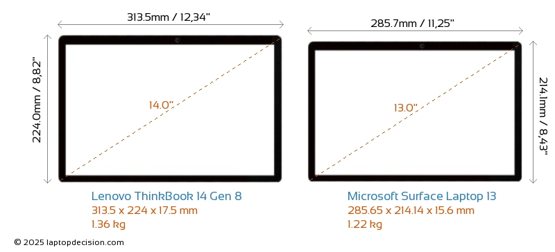 Prise AudioLes deux ThinkBook 14 Gen 8 et Surface Laptop 13 sont équipés d'une prise audio de 3,5 mm, permettant une connexion sans interruption aux écouteurs et haut-parleurs.