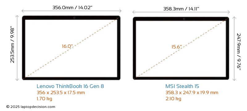 USBLes deux ThinkBook 16 Gen 8 et Stealth 15 disposent de 2x USB 3.2 ports USB-A.Les deux ThinkBook 16 Gen 8 et Stealth 15 disposent de ports USB Type-C. ThinkBook 16 Gen 8 dispose de 2x USB 4.0 ports USB Type-C, tandis que Stealth 15 en dispose de 2x USB 3.2.