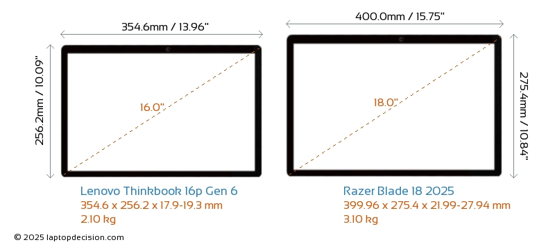 HDMILes deux Thinkbook 16p Gen 6 et Blade 18 2025 disposent d'un port HDMI (1x HDMI 2.1) pour se connecter à des moniteurs externes.