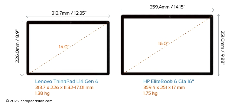 USBLes deux ThinkPad L14 Gen 6 et EliteBook 6 G1a 16" disposent de ports USB-A. ThinkPad L14 Gen 6 dispose de 3x USB 3.2 ports USB-A, tandis que EliteBook 6 G1a 16" en dispose de 2x USB 3.2.Les deux ThinkPad L14 Gen 6 et EliteBook 6 G1a 16" disposent de 2x USB 4.0 ports USB Type-C.