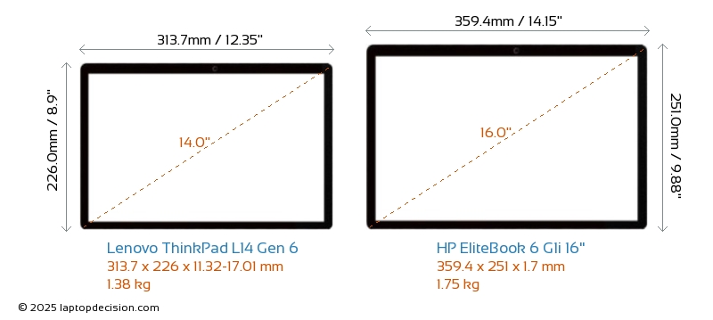 USBLes deux ThinkPad L14 Gen 6 et EliteBook 6 G1i 16" disposent de ports USB-A. ThinkPad L14 Gen 6 dispose de 3x USB 3.2 ports USB-A, tandis que EliteBook 6 G1i 16" en dispose de 2x USB 3.2.Les deux ThinkPad L14 Gen 6 et EliteBook 6 G1i 16" disposent de 2x USB 4.0 ports USB Type-C.