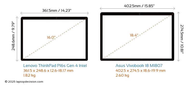 HDMILes deux ThinkPad P16s Gen 4 Intel et Vivobook 18 M1807 disposent d'un port HDMI (1x HDMI 2.1) pour se connecter à des moniteurs externes.