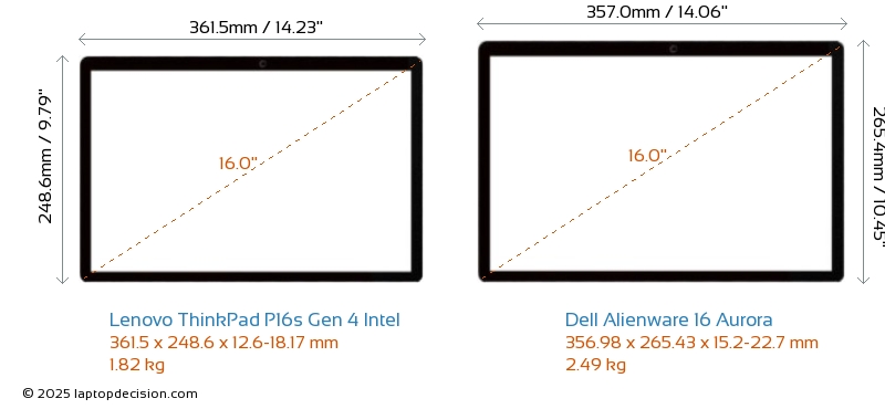 Thunderbolt ThinkPad P16s Gen 4 Intel est équipé d'un port Thunderbolt 4. Alienware 16 Aurora n'a pas de port Thunderbolt.