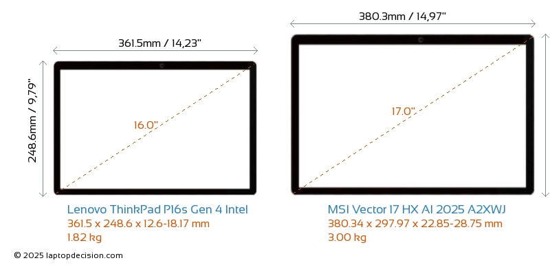 HDMILes deux ThinkPad P16s Gen 4 Intel et Vector 17 HX AI 2025 A2XWJ disposent d'un port HDMI (1x HDMI 2.1) pour se connecter à des moniteurs externes.