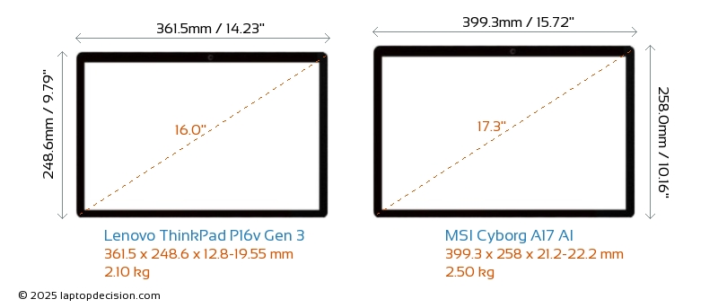 HDMILes deux ThinkPad P16v Gen 3 et Cyborg A17 AI disposent d'un port HDMI (1x HDMI 2.1) pour se connecter à des moniteurs externes.