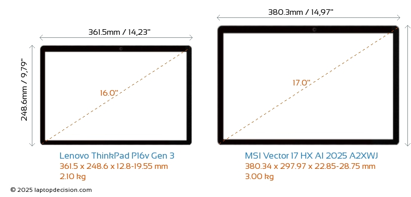 HDMILes deux ThinkPad P16v Gen 3 et Vector 17 HX AI 2025 A2XWJ disposent d'un port HDMI (1x HDMI 2.1) pour se connecter à des moniteurs externes.