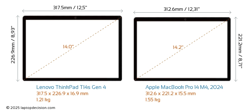 ThunderboltLes deux ThinkPad T14s Gen 4 et MacBook Pro 14 M4, 2024 sont équipés de Thunderbolt 4 ports.