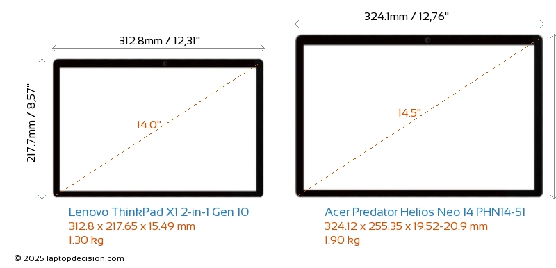Prise AudioLes deux ThinkPad X1 2-in-1 Gen 10 et Predator Helios Neo 14 PHN14-51 sont équipés d'une prise audio de 3,5 mm, permettant une connexion sans interruption aux écouteurs et haut-parleurs.