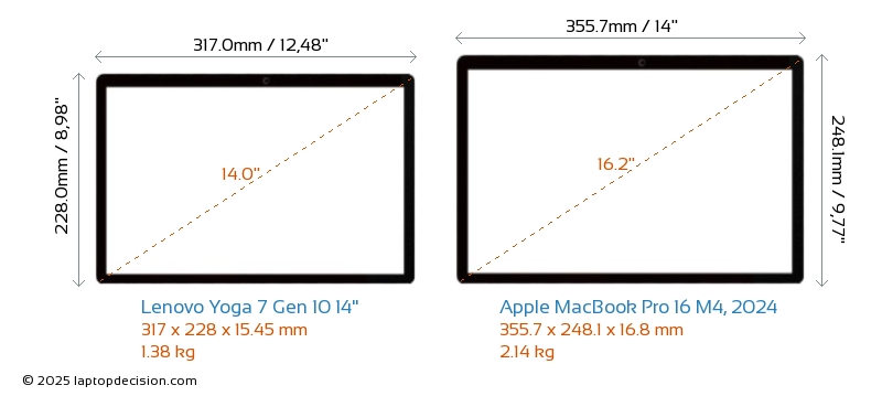 Prise AudioLes deux Yoga 7 Gen 10 14" et MacBook Pro 16 M4, 2024 sont équipés d'une prise audio de 3,5 mm, permettant une connexion sans interruption aux écouteurs et haut-parleurs.