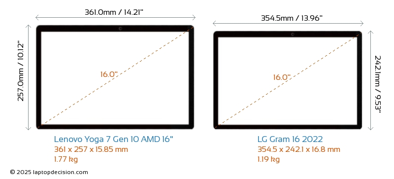 HDMILes deux Yoga 7 Gen 10 AMD 16" et Gram 16 2022 disposent d'un port HDMI. Yoga 7 Gen 10 AMD 16" offre 1x HDMI 1.4, tandis que Gram 16 2022 offre 1x HDMI 2.0.