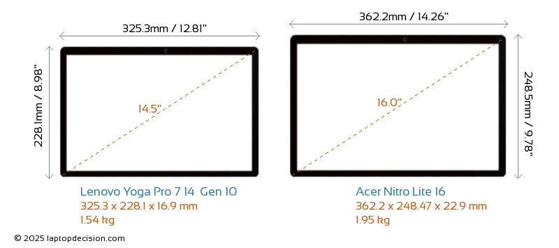 USBLes deux Yoga Pro 7 14 Gen 10 et Nitro Lite 16 disposent de 2x USB 3.2 ports USB-A.Les deux Yoga Pro 7 14 Gen 10 et Nitro Lite 16 disposent de ports USB Type-C. Yoga Pro 7 14 Gen 10 dispose de 2x USB 4.0 ports USB Type-C, tandis que Nitro Lite 16 en dispose de 1x USB 4.0.