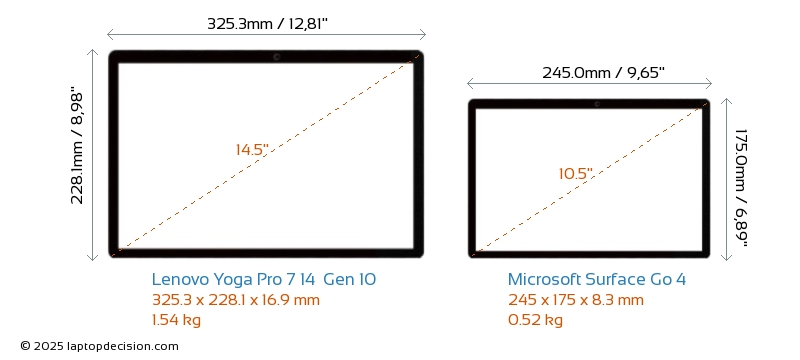 ThunderboltAucun des deux Yoga Pro 7 14 Gen 10 ni Surface Go 4 n'a de port Thunderbolt.