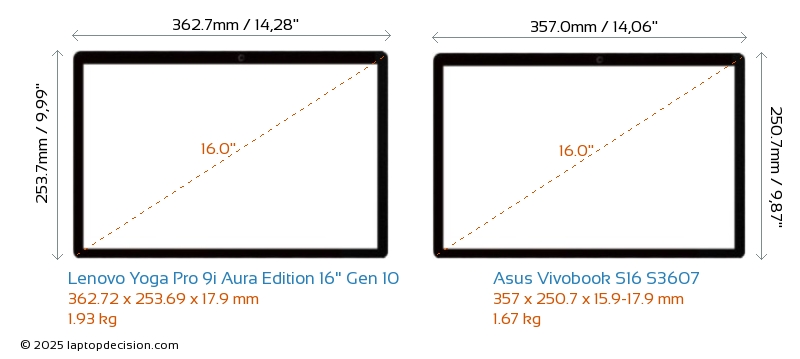 Thunderbolt Yoga Pro 9i Aura Edition 16" Gen 10 est équipé d'un port Thunderbolt 4. Vivobook S16 S3607 n'a pas de port Thunderbolt.