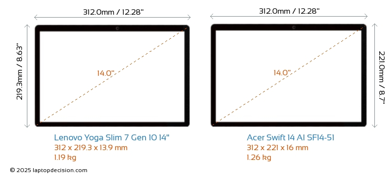 HDMILes deux Yoga Slim 7 Gen 10 14" et Swift 14 AI SF14-51 disposent d'un port HDMI (1x HDMI 2.1) pour se connecter à des moniteurs externes.