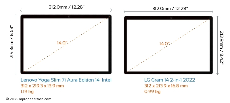 HDMILes deux Yoga Slim 7i Aura Edition 14 Intel et Gram 14 2-in-1 2022 disposent d'un port HDMI. Yoga Slim 7i Aura Edition 14 Intel offre 1x HDMI 2.1, tandis que Gram 14 2-in-1 2022 offre 1x HDMI 2.0.