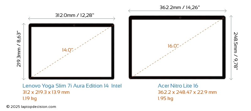 Wifi Yoga Slim 7i Aura Edition 14 Intel dispose d'une norme Wi-Fi plus avancée v7, offrant des connexions sans fil plus rapides et fiables par rapport à Nitro Lite 16 (v6).